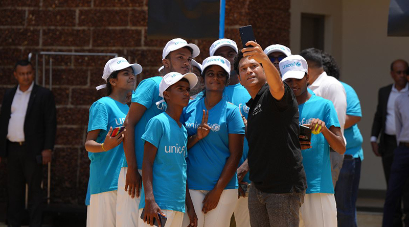 සචින් ටෙන්ඩුල්කාර් ශ්රී ලංකීය දූවා දරුවන් සමඟ සුව දුක් විමසමින් කාලය ගත කරයි